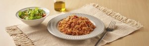 - Adicione o arroz branco cozido e o molho de tomate. Ajuste o sal, tempere com pimenta-do-reino a gosto e mexa bem;