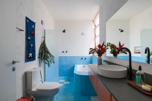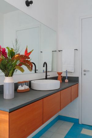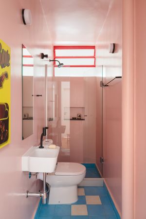 Lavabo assinado pelo escritório Sertão Arquitetos otimiza dimensões compactas com uso de cores e peças versáteis em design e instalação