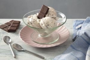 - Em uma batedeira, coloque o MOÇA Sorvete gelado e adicione os pedaços de Chocolate NESTLÉ CLASSIC ralado fino. Certifique-se de que os flocos de chocolate estejam bem distribuídos na mistura.