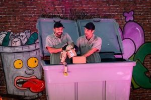 Na peça dois amigos, que trabalham como coletores de lixo, descobrem através dos materiais descartados a possibilidade de transformá-los em bonecos, brinquedos e elementos lúdicos.