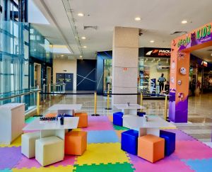 A estrutura conta com puffs e mesas para customizações, proporcionando um ambiente confortável e lúdico para as atividades. A entrada é gratuita, com agendamento em ordem de chegada e confirmação na lista, com capacidade para 6 crianças a cada 20 minutos.