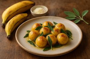 Nhoque de banana-da-terra com sálvia