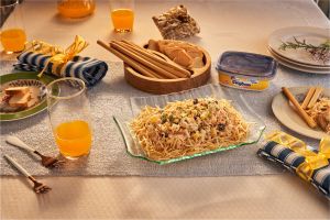 – 3 xícaras (chá) de peito de Peru Perdigão cozido e desfiado (300g)