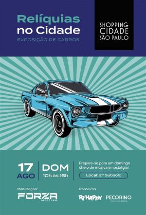 No dia 17 de agosto (domingo), das 10h às 16h, o Shopping Cidade São Paulo realiza a exposição Relíquias da Cidade, um encontro especial para apaixonados por carros antigos e cultura automotiva. Em parceria com o grupo Forza Meeting, o evento reunirá cerca de 30 veículos clássicos, incluindo modelos com placa preta e carros modificados que marcaram as décadas de 1980, 1990 e 2000.