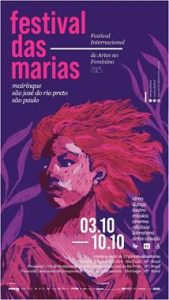 A sexta edição do Festival das Marias, Festival Internacional de Artes no Feminino acontece no Brasil entre os dias 03 a 10 de outubro de 2025. A programação, pensada para os públicos adulto e infantil – contempla criações femininas em música, teatro, dança, circo, cinema, artes visuais e literatura, entre outros. O acesso a todos os eventos é gratuito.
