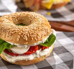 Bastante conhecidos dos filmes e séries estadunidenses, o bagel é um pão feito com massa de farinha de trigo moldada à mão, aferventado e depois assado. O resultado é uma massa salgada mais firme que o primo doce donut. Consumido puro, apenas com gergelim e manteiga, ou bem recheado, os bagels caem bem no café da manhã ou lanche da tarde, saciando a fome com muito sabor.